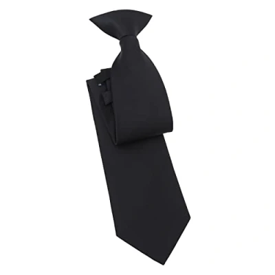 DQT Men's Plain Twill Wedding Formal Clip On Tie Black