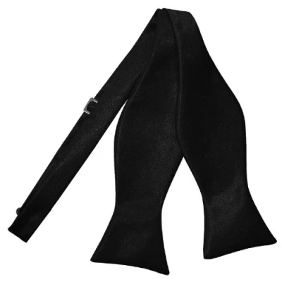 DQT Men Self Tied Plain Satin Tuxedo Bow Tie Black