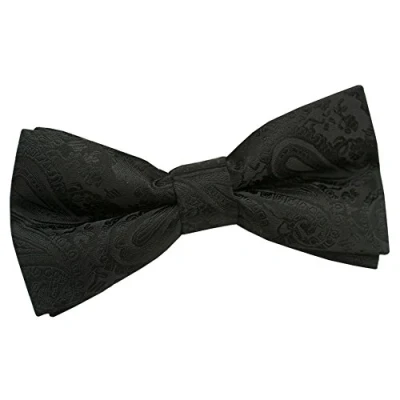 DQT New Paisley Black Men's Pre tied Bow Tie