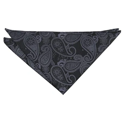 DQT Paisley Bohemian Floral Wedding Pocket Square Handkerchief for Men Black & Charcoal