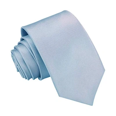 DQT Plain Glossy Satin Polyester Wedding Neck Tie for Boys 7 12 Years Old in Dusty Blue