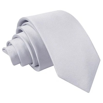 DQT Plain Glossy Satin Polyester Wedding Neck Tie for Boys 7 12 Years Old in Silver