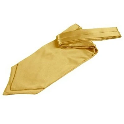 DQT Plain Satin Wedding Self Tie Ascot Cravat for Men Gold