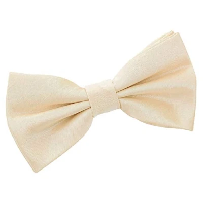 DQT Plain Shantung Polyester Wedding Tuxedo Pre Tied Bow Tie for Men in Beige