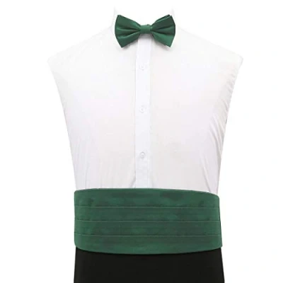 DQT Plain Shantung Wedding 3 Pleat Design Cummerbund for Men in Emerald Green