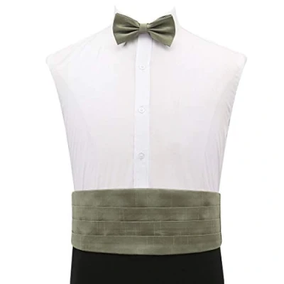 DQT Plain Shantung Wedding 3 Pleat Design Cummerbund for Men in Sage Green