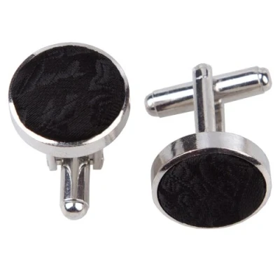 DQT Premium Woven Microfibre Paisley Floral Patterned Black Men's Formal Casual Wedding Rhodium Plated Cufflinks