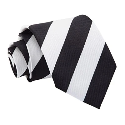DQT Stripe Patterned Casual Business Party Work Classic Neck Tie for Men in Black and White