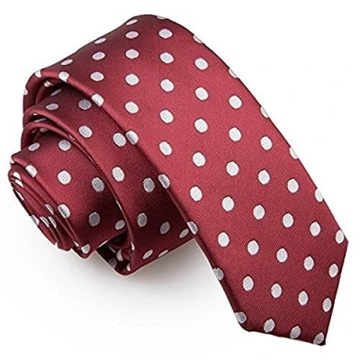 DQT Woven Polka Dot Classic Patterned Fashion Casual Skinny Neck Tie for Men in Burgundy