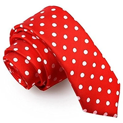 DQT Woven Polka Dot Classic Patterned Fashion Casual Skinny Neck Tie for Men in Red