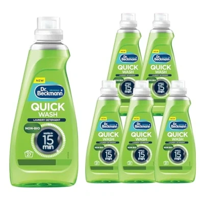 Dr. Beckmann Quick Wash Non Bio, Deep clean laundry, Works in 15 mins, Powerful on stains, Plus Colour run protection, 7 days freshness, 810ml x 6, 162 Washes, 100% reusable bottle