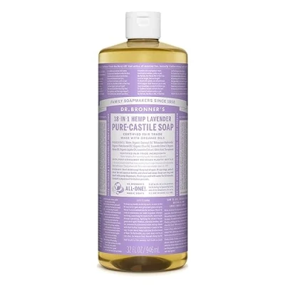 Dr Bronner's 18 in 1 Lavender Pure Castile Liquid Soap, Made with Organic Oils. Used for Face, Body, Hair, Dishes, Mopping and Pets, Certified Fair Trade & Vegan Friendly, 946ml Recycled Bottle