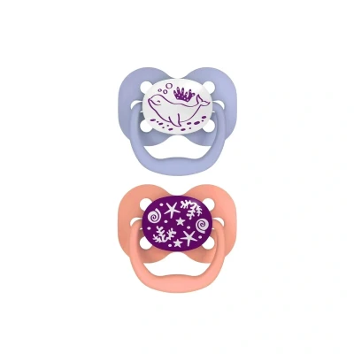 Dr Brown's Natural Flow Advantage Glow in the Dark Soother Pink, Stage 1 (0 6 months) 2 pack