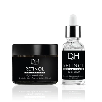 Dr H Retinol Anti-Ageing Night Moisturiser 60ml. Retinol helps soften fine wrinkles. Hyaluronic Acid hydrates skin. Vitamin E protects from free radicals.. Dr H Anti-Aging Retinol Facial Serum 30ml. Retinol may soften fine wrinkles. Hyaluronic Acid may hydrate skin and soften wrinkles. Vitamin E is an antioxidant that protects skin from free radicals.