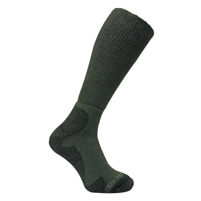 Amazon3 SIZES - These socks come in a one pair pack and are available in 3 different sizes. Available in the colour green. ULTIMATE COMFORT - Made with a warm durable mix of merino wool and polycolon, a cushioned foot and an extra wide top these socks have everything for warmth and comfort. EXTRA WIDE - An advanced knitting process allows the sock to stretch to the natural contours of your legs, meaning no more constriction rings. MERINO WOOL - These socks are made out of merino wool, a highly effective thermal insulator that will keep your feet warm in the coldest of temperatures. CUSHIONED - There is also a reinforced heel and toe to cushion your feet for when you go off course on rough terrain.