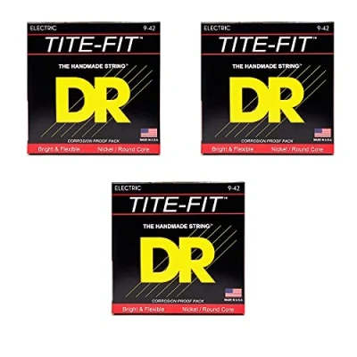 DR LT9 Tite Fit Electric Guitar Strings, 009 042, 3 Pack