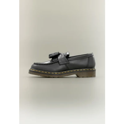 The loafers are styled with a tassel tag and trims, adding a touch of sophistication to the overall design. Dr. Martens has updated this classic silhouette with yellow Goodwelt stitching along its customarily ridged midsoles, which lends a contemporary edge to its retro roots. Whether you're dressing up for a corporate meeting or heading out for casual errands, the Adrian loafers effortlessly elevate your ensemble.
