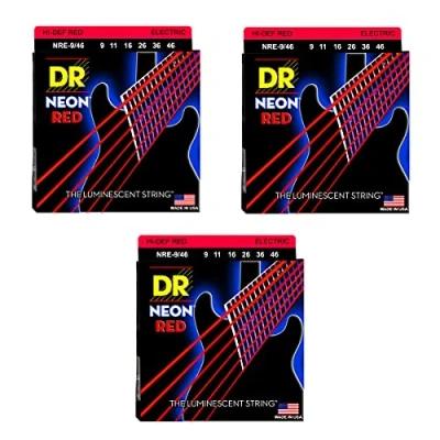 DR NRE10 Hi Def Neon Red Electric Guitar Strings 010 046 3 Pack