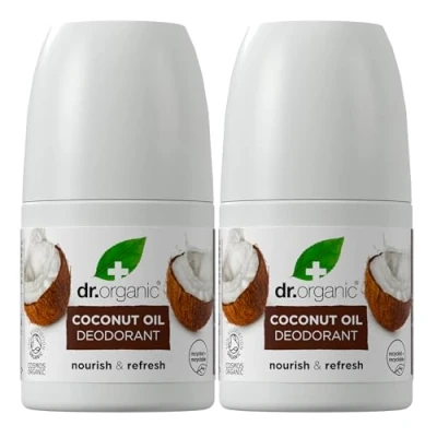 Dr Organic Coconut Oil Deodorant Aluminium Free Soothing, Nourishing & Hydrating Vegan, Cruelty, Paraben SLS 50ml 2 Pack