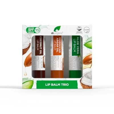 Dr Organic Lip Balm Gift Set, Moisturising, SPF 15, Assorted Multipack with Aloe Vera, Argan Oil, Coconut Natural, Vegetarian, Cruelty Free, Paraben & SLS Organic, 5.7ml