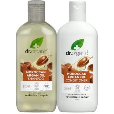 SHAMPOO & CONDITIONER SET: Helps soothe the scalp and hydrate and restore dry and damaged hair, leaving hair feeling nourished and visibly healthy. Complete with a travel bag. MOROCCAN ARGAN RANGE: Suitable for normal or dry skin and dry or damaged hair types, the Moroccan Argan Range by Dr Organic is focused on naturally revitalising and nourishing your skin and hair. MOROCCAN ARGAN OIL: Rich in life-giving antioxidants, vitamins and moisture-retaining fatty acids, it has the ability to inject life back into dull skin and damaged hair. It absorbs easily, aiding skin to ease problem areas. SUPPORTING PLANET ACTION: Always with recyclable and recycled PCR packaging. Committed to planet action, including the preservation of essential forests. We do not test our ingredients on animals, and never will! DR ORGANIC: Founded to blend clean, organic ingredients to create cruelty-free and high-quality beauty and personal care products. Our products are functional by design and free from SLS, parabens, mineral oils, and silicones, with ranges suitable for vegetarians and vegans.