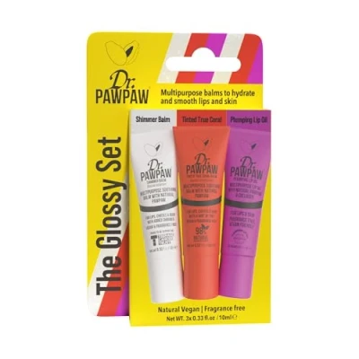 Glossy Trio: A Glossy Set featuring three 10ml Multi Purpose PawPaw Balms, designed to hydrate lips, skin, hair, cuticles and nails while delivering a smooth glossy finish suitable for everyday use. Hydrating Care: Formulated with PawPaw and natural ingredients to help nourish and soften dry lips and skin, supporting long lasting comfort and a healthy looking glossy finish without added fragrance. Daily Use: Apply to lips for hydration and shine, smooth onto dry skin or cuticles, or use on hair ends whenever moisture is needed, ideal for simple daily routines and on the go care. Fragrance Free: Created without added fragrance, making this set suitable for sensitive skin and those who prefer gentle formulas while still enjoying effective hydration and glossy results. Vegan Formula: Made with vegan ingredients and cruelty free, these multipurpose balms are suitable for all skin types and support conscious beauty choices without compromising on performance.