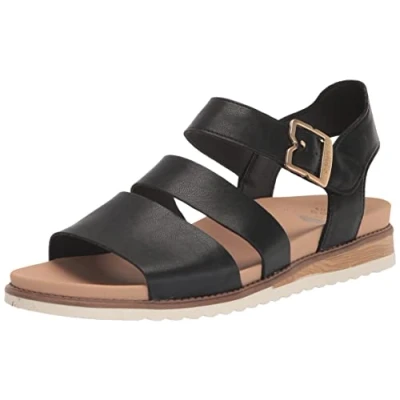 Dr. Scholl's Women's Island Glow Strappy Flat Sandal, Smooth Black, 8 UK