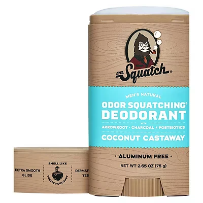 Boots33 Advantage card points. Dr. Squatch Deodorant Wide Stick Coconut Castaway 75g FREE Delivery on orders over 45 GBP.
