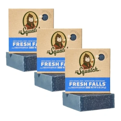 RAISE THE BAR on your shower with our sudstastic soap bar in Dr. Squatch’s favorite scent: Fresh Falls. Smell like a crisp forest waterfall and enjoy the smooth zero grit bar of soap. NATURAL COLD PROCESS SOAP - Made in the USA using a traditional cold process and with nourishing natural ingredients like Coconut Oil, Shea Butter, and Kaolin Clay. NO HARMFUL INGREDIENTS - Our products are 98-100% natural in origin and we never use harsh chemicals or synthetics like parabens, sulfates, phthalates, or silicones. DOC’S NOTES - We develop our high-performance natural products specifically for the needs of men so lather up and scrub to smell fresh and feel clean day in and day out. MAKES A GREAT GIFT - Give the gift of a routine upgrade so everyone can smell like a champion!