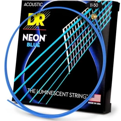 DR Strings NBA12 12 54 Medium Set Handmade Neon Hi Def Blue Coated Acoustic