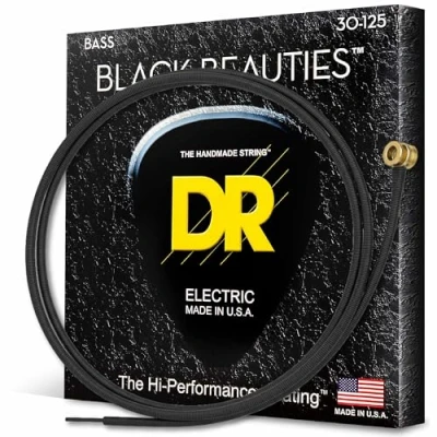 Black Coated Nickel Plated Bass Guitar Strings on Round Core. Players tell us that these strings have more volume, less unwanted overtones, greater clarity and articulation then standard, uncoated strings 30-125 Medium 6-String set Handmade in USA