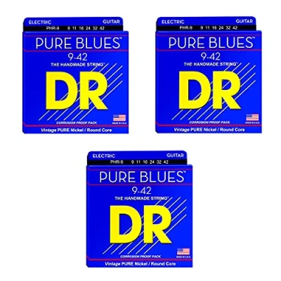 DR PHR 9/46 Pure Blues Electric Guitar Strings 009 046 3 Pack