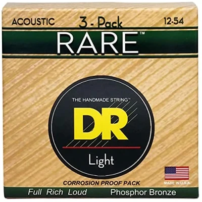 DR Strings Rare Phosphor Bronze Acoustic Guitar Strings, Light 12 54, 3 Pack (RPM 3PK)