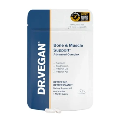 ADVANCED MULTI-NUTRIENT: Highly absorbable Calcium, Magnesium, Vitamin D3, and Vitamin K2 to help strengthen bones and support muscle health daily. Like all DR.VEGAN supplements, Bone & Muscle Support is more comprehensive, contains ingredients of the highest quality, and at higher, optimal dosages compared to standard supplements. MAINTAIN HEALTHY BONES: Designed to support bone health and bone density, our formula is perfect for those concerned with bone conditions like osteoporosis and osteopenia. Magnesium also helps promote muscle health and recovery, making it ideal for those with an active lifestyle. SUPPORT FOR WOMEN’S HEALTH: This supplement is particularly beneficial for women, including those who are breastfeeding or going through menopause, offering essential nutrients to support bone and muscle health during key life stages. VEGAN AND ALLERGEN FRIENDLY: Free of allergens including gluten, dairy, wheat, lactose, sugar, starch and zero nasty additives or animal ingredients for more absorable, more effective and kinder to your body. Suitable for all diets. 100% PLASTIC-FREE: Pouches contain zero plastic and instead use starch-based seals, plant-based inks and paper for a better planet and a sustainable alternative.
