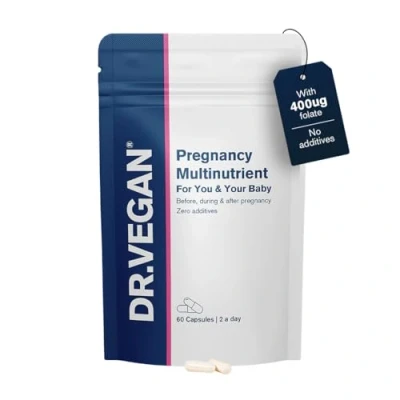 COMPLETE PREGNANCY SUPPORT: Our Pregnancy Multinutrient is specially formulated to provide the most comprehensive support before, during, and after pregnancy. It’s designed to nourish both you and your baby with essential vitamins and minerals for optimal health. SUPPORTS FOETAL DEVELOPMENT: With 400ug of Folate (Folic Acid) in its cleanest, most absorbable form, as recommended by the UK Department of Health, this supplement is crucial for supporting healthy foetal development before and after conception. IMMUNE SYSTEM BOOST: DR.VEGAN’s Pregnancy Multinutrient includes optimal levels of Vitamin C, Iron, Zinc, Folic Acid, and Vitamins D3, B6, and B12 to help maintain a strong immune system throughout pregnancy and postpartum. ALLERGEN FRIENDLY: Free from common allergens, including gluten, dairy, lactose, sugar, and starch. It's ideal for those on gluten-free, dairy-free, or other special diets. SUSTAINABLE PACKAGING: Recyclable pouches are a more sustainable packaging solution.