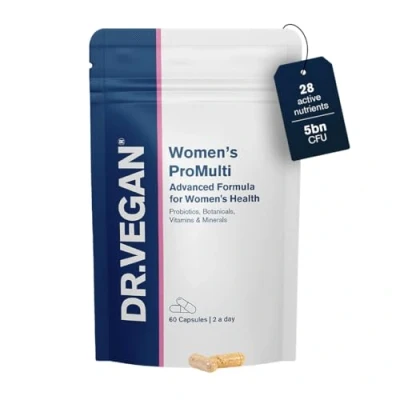 JoybuyDR.VEGAN Womens Pro Multi Daily Support Capsules are a vegan, allergen-free multivitamin with over 25 nutrients, probiotics, and botanicals, designed to support women’s energy, hormonal balance, immunity, skin, hair, nails, bones, and digestion. Made in the UK, it suits all ages and lifestyles.