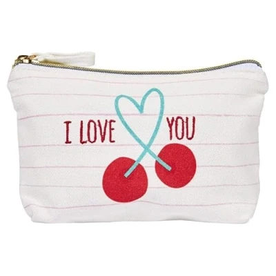 Draeger I Love You Cotton Pouch with Zip Make Up Storage, Lipstick, Pencils Ideal Birthday Gift for All Occasions 100% Cotton, Multicolored, 21x12cm,