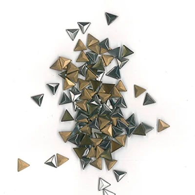 120 x 8mm 3D Triangles Iron-On Nail ArtSimply iron it on with an iron. Ideal for customising clothes and any other fabric based decorative objects. Wash at 30°C. Do not tumble dry.