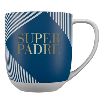 CERAMIC MUG: Enjoy your favorite drinks in this stylish 320ml ceramic mug, designed with high-quality materials that ensure a pleasant and long-lasting using experience. CHIC AND MODERN DESIGN: Choose from blue or pink, with geometric line illustrations and gold details, bringing a sophisticated touch to your daily routine. PERSONALIZED MESSAGE: Express your feelings with the message "Super Father" in hot gold, which makes this mug a unique gift, full of meaning and appreciation. DISHWASHER SAFE: The mug is designed to be practical and convenient to use, being dishwasher safe, making it easy to clean and maintain without losing its original shine. #REF!