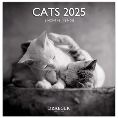 DRAEGER PARIS 1886 Large Wall Calendar 29 x cm 2025 7 languages September 2024 to December 12 photographs available in several themes Black and white cats Appointment note