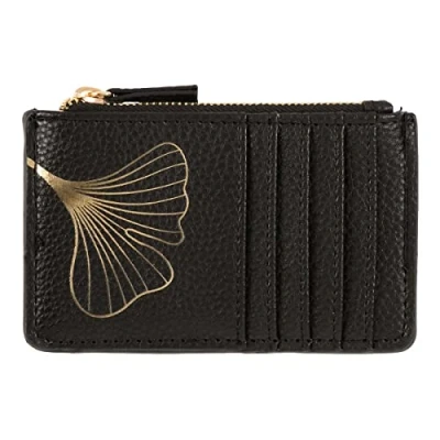 DRAEGER PARIS 1886 Unisex Adult Zip Card Holder Ginkgo Leaf Gold Black, M