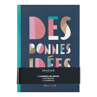 A notebook for every occasion: with our set of 3 "Good Ideas" notebooks, you can easily and quickly change your notebook according to your needs. You can dedicate each notebook to a particular use: journaling, taking notes, projects.. Practical format: take your notebooks to work, at high school, everywhere with you to record everything important. These 3 notebooks in A5 size (15 x 21 cm) with a weight of 100 g/m² can easily fit in your bag. Each notebook has a soft cover and 72 lined pages. Personalise your notebooks: Draeger offers you various embellishments (stickers, stencils, stamps) to decorate your notebooks according to your taste and taste. FSC certified paper: To preserve our beautiful planet, we use vegetable inks and FSC certified paper that comes from responsibly managed forests and controlled materials. Enhancing your emotions since 1886: Draeger has written some of the most beautiful iconographic pages of the 20th century, working for large luxury names and collaborating with renowned artists like Dali, Picasso, Cocteau and Matisse. Today, Draeger continues to rely on quality products to deliver happiness and emotions: the beauty of images, elegance of messages, nobility of materials and perfection of design.