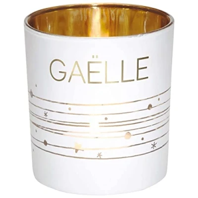 Draeger Paris Gael Name Tealight Holder in White Glass and Gold, H 8 x L 7.5 cm