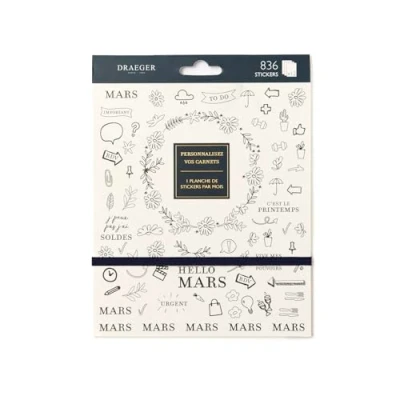 Draeger Paris Notebook of Organisation Stickers Black & White Home Office 12 Sheets