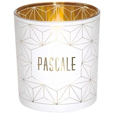 Draeger Paris Pascal Name Tealight Holder in White Glass and Gold, H8 x L7.5 cm
