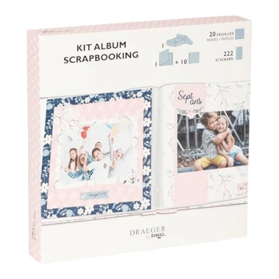 Create an album for your image: discover our kit for making your own scrapbooking. You can incorporate your photos, small words, drawings... and personalise it according to your taste: a beautiful DIY project A complete kit: This kit contains all the necessary materials to create and decorate your scrapbooking album: 1 album 24 x 22 cm, 10 transparent pockets, 20 patterned paper 20 x 20 cm, 3 sheets of stickers and 1 step by step booklet. A lovely gift: our kit is presented in a pretty blue and pink flower print box, ideal for giving as a gift for birthdays, Christmas or any other occasion. This box can be reused to store things or to store the album. FSC certified paper: To preserve our beautiful planet, we use vegetable inks and FSC certified paper that comes from responsibly managed forests and controlled materials. Once a dreeger by Toga: since 2003, the Draeger by Toga brand offers you a wide range of creative activities related to paper: scrapbooking, bullet journal, travel journal, recipe binder... guided by the belief that stationery can be renewed to infinity, the brand constantly renews its collections, always in the pulse of time, to accompany you on a daily basis., Manufacturer: DRAEGER PARIS 1886