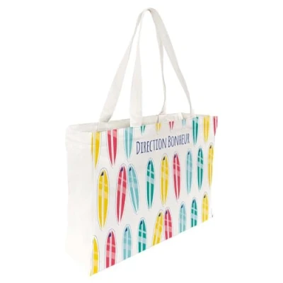 Draeger Paris Tote Bag Surfbretter "Direction Bonheur" (auf Französisch) leicht, robust und ultraweich geräumige Innenseite aus 100 % Baumwolle Einkaufstasche wiederverwendbar