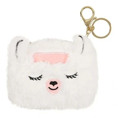 DRAEGER Paris White Plush Llama Coin Purse Cute Gift Animals for Child Wallet with Keyring Idea Girl Woman Adult Child, White, 12x9cm, Purses