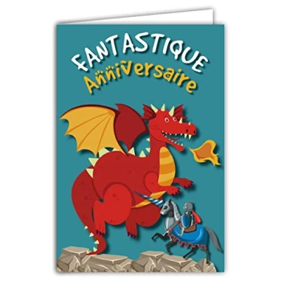 Dragon Birthday Card Fantasy Animal Boy Knight Horse Illustration with Envelope Format 12 x 17.5 cm Glossy Paper 300 g Made in France 69 8049