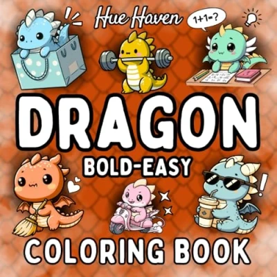Dragon: Easy and Bold Coloring Book for Kids Adults: Simple Stress Relief Designs of Cute Dragons.